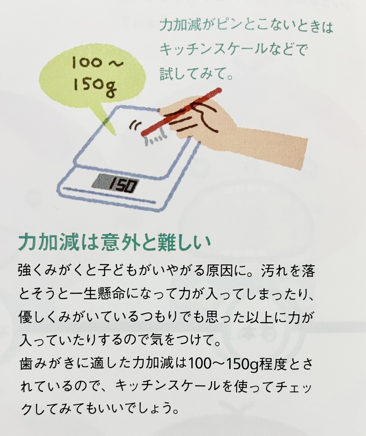 但若是大家使用拿筆的方式來握牙刷,在日本的牙醫界也是建議以握筆方式來握牙刷刷牙,力道相對就可控制在150克以內唷!